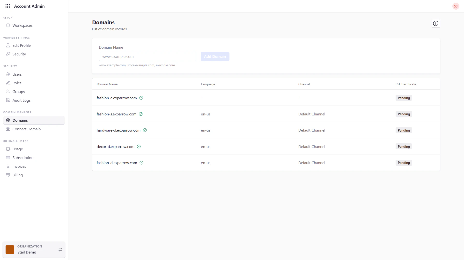 - View Registered Domains See a list of all domains you’ve added to Experro, along with their verification status.