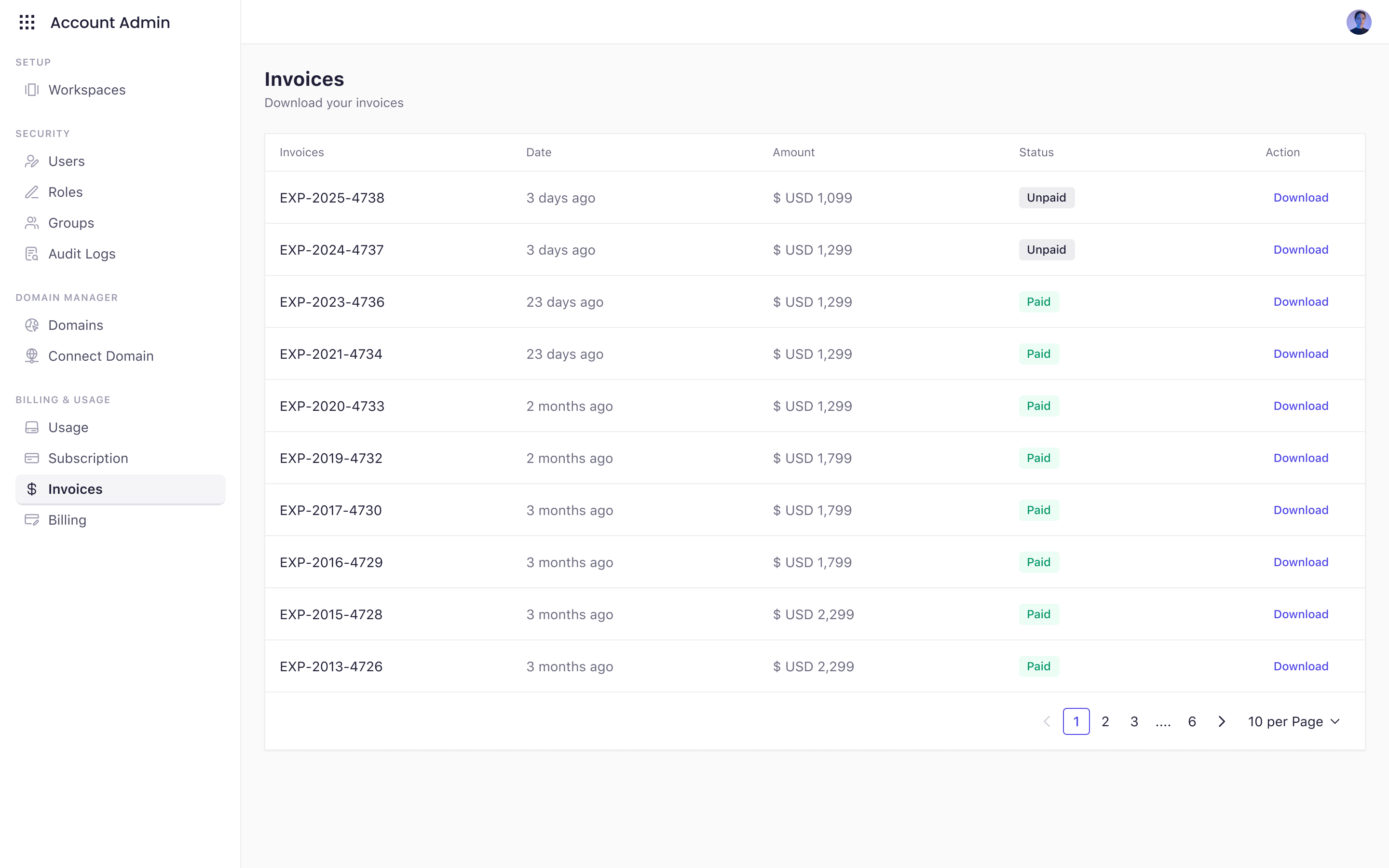 - Download PDF Invoices Click the Download action to retrieve a PDF version suitable for accounting or tax purposes.