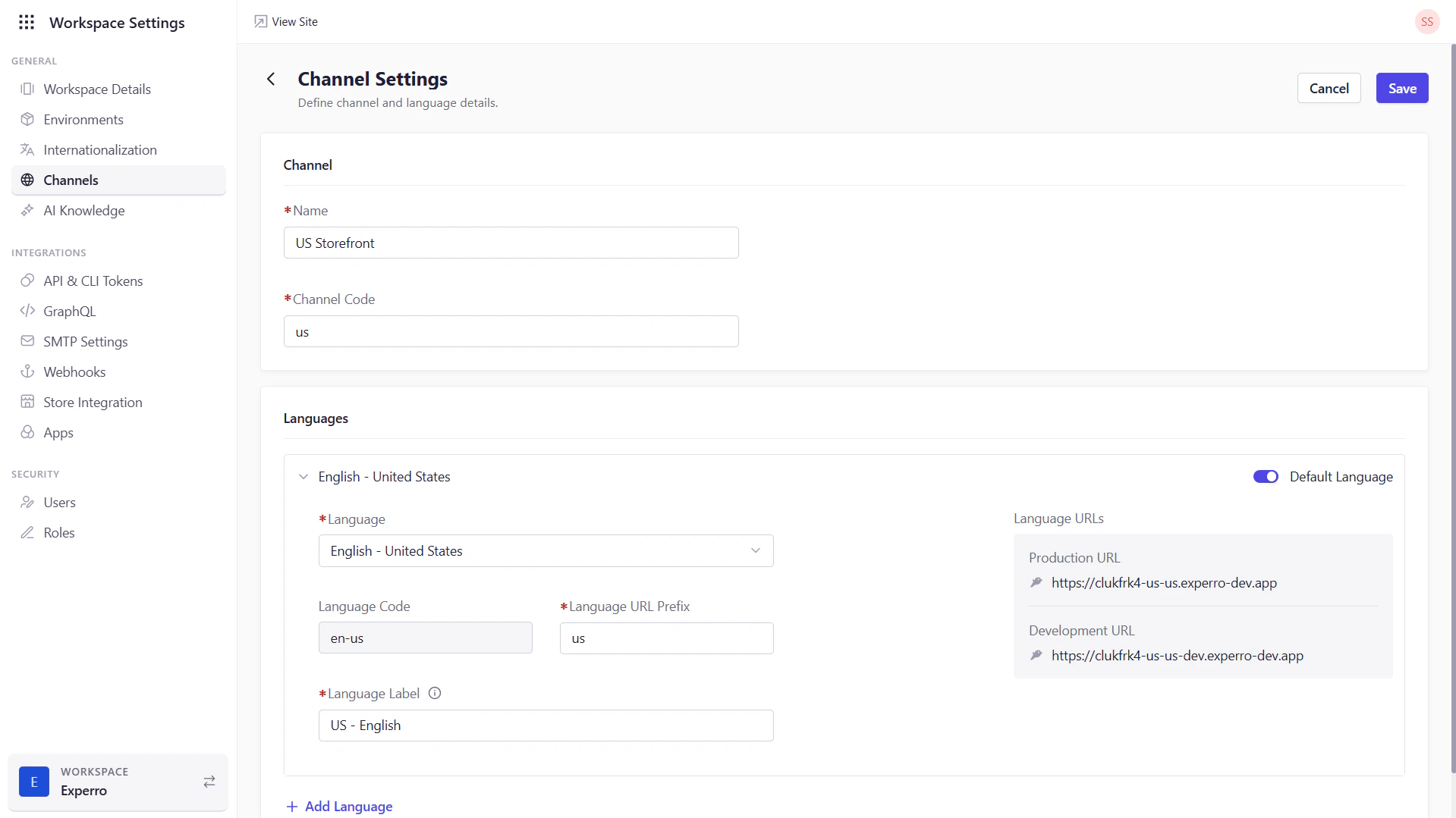 - Create New Channels – Click Add Channel to define a fresh channel, mapping it to one or more languages and setting URL prefixes.