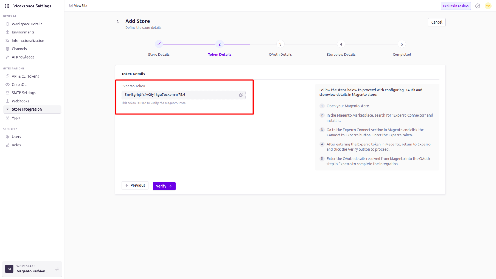 For Shopify and BigCommerce, Experro offers seamless, plug-and-play connectors. Follow the linked documentation to connect to the store, grant the necessary scopes, and start syncing your catalog and orders within minutes.Magento