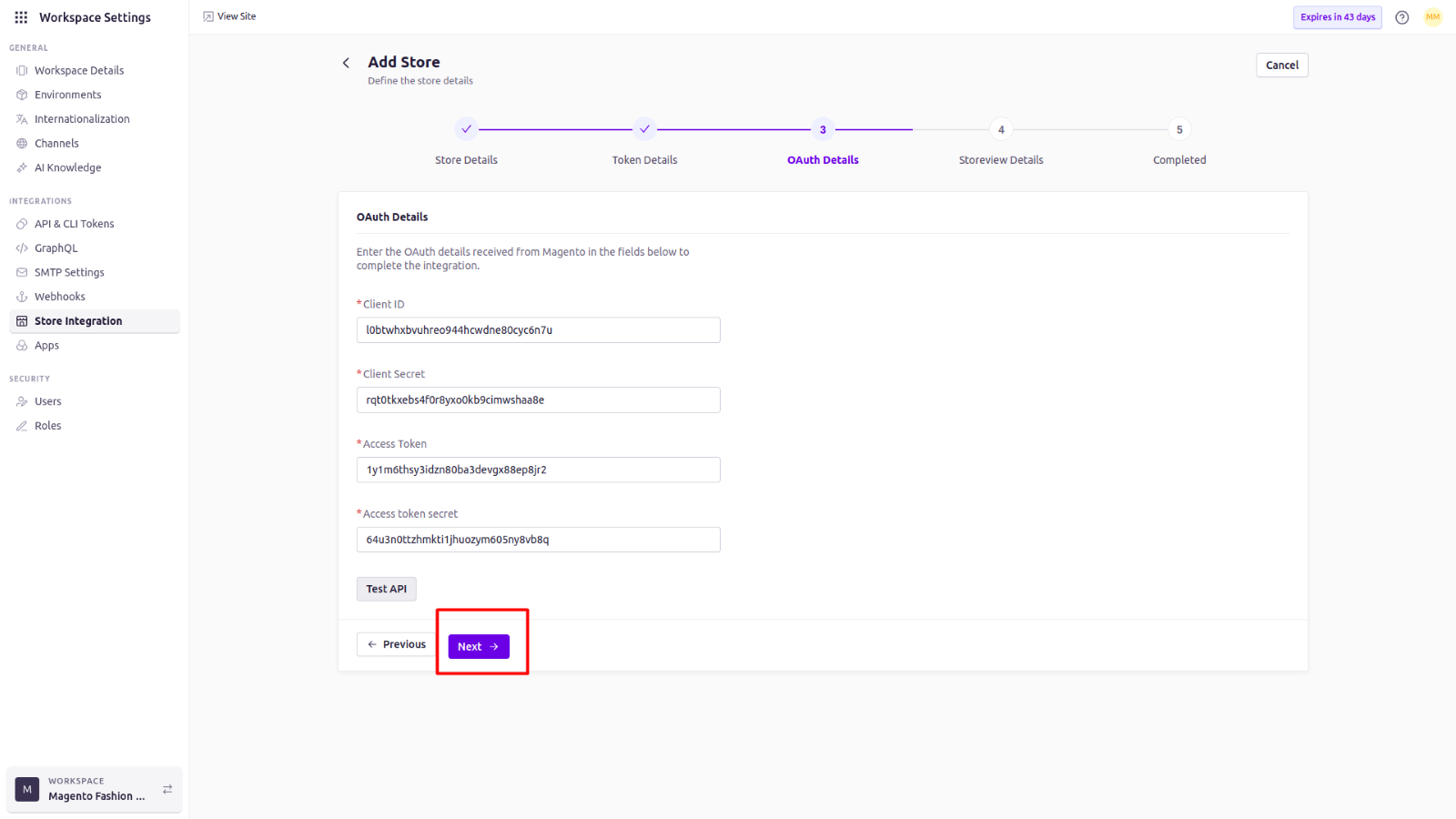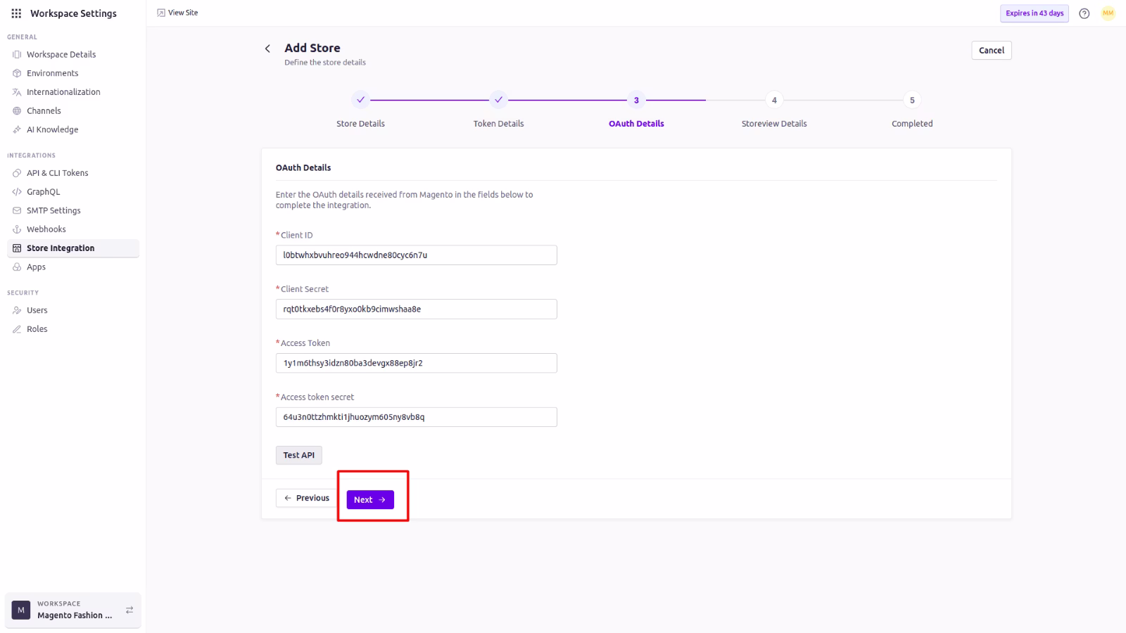 - Copy the store details information from the Magento Admin panel into the respective fields.