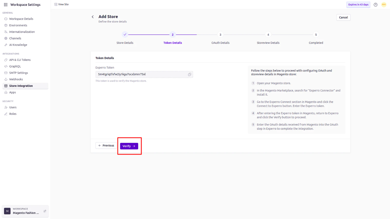 - After clicking Verify, you will be redirected to the OAuth Details page.