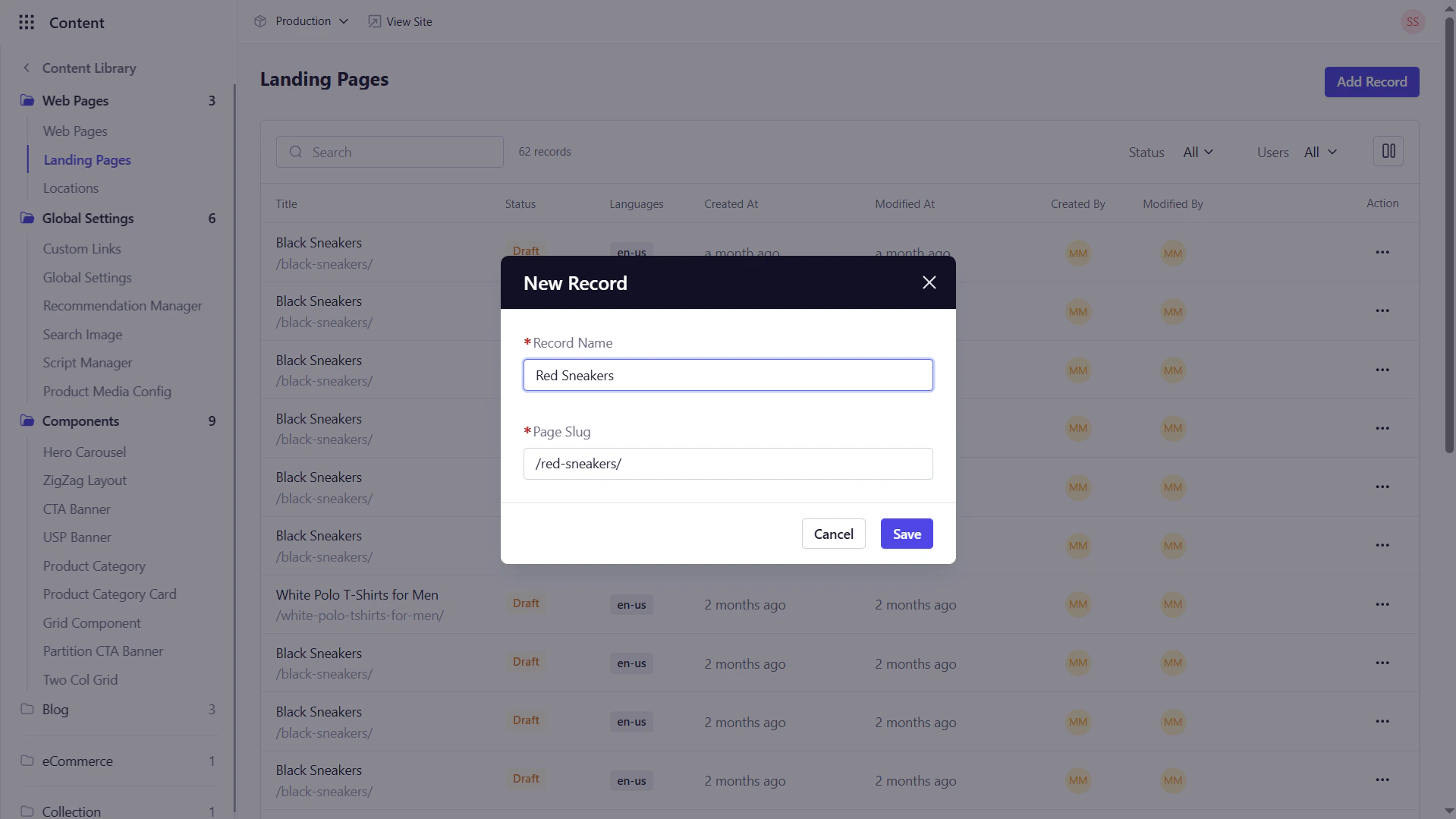 Slug : The Slug will be auto-generated based on the record name.