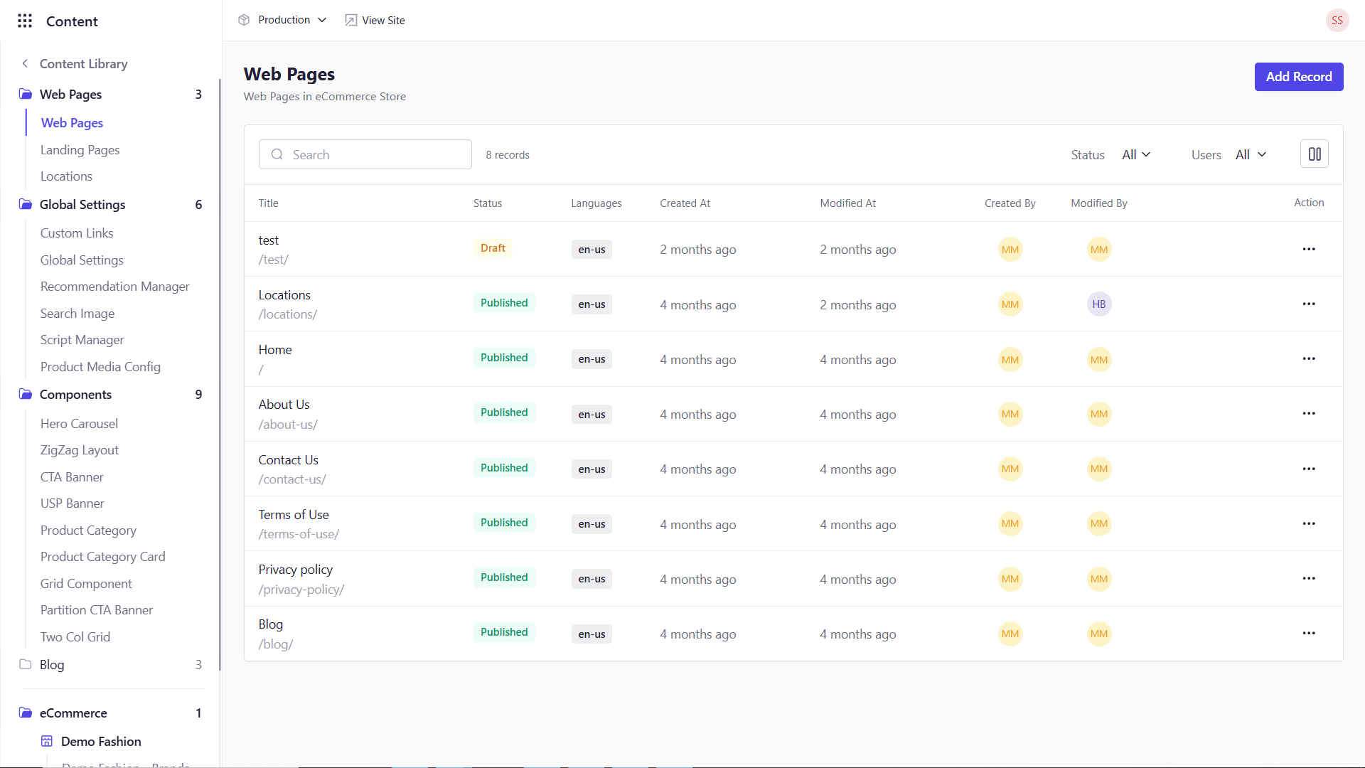 From the left panel, choose the Model you wish to populate (e.g., “Blog Post,” “Product,” “Homepage”). The Models you have created will be listed here.