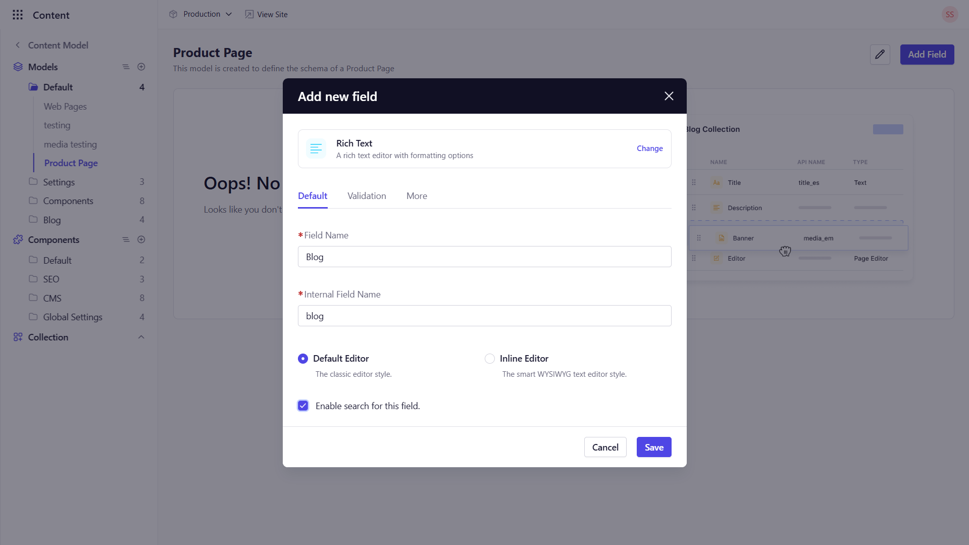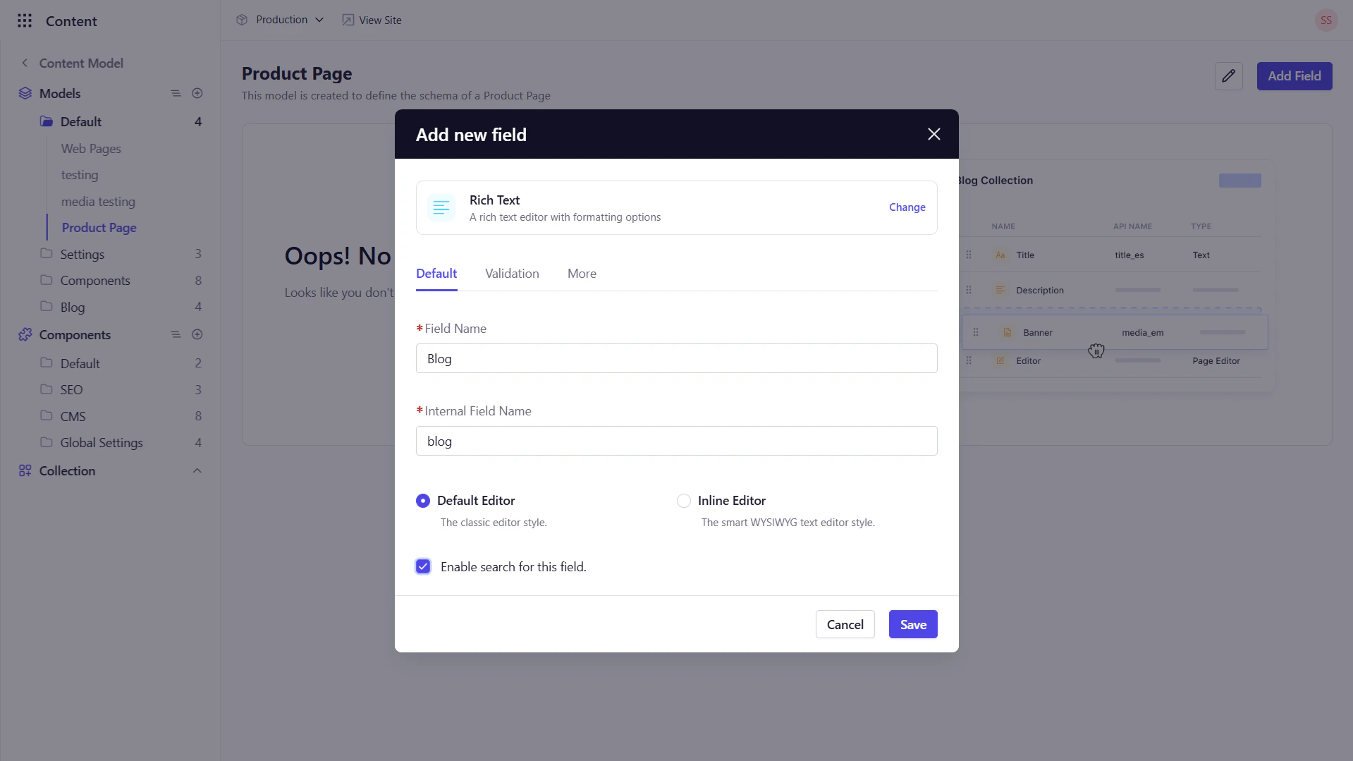 - Default Editor/Inline Editor: Select the editor that should be used for this field.