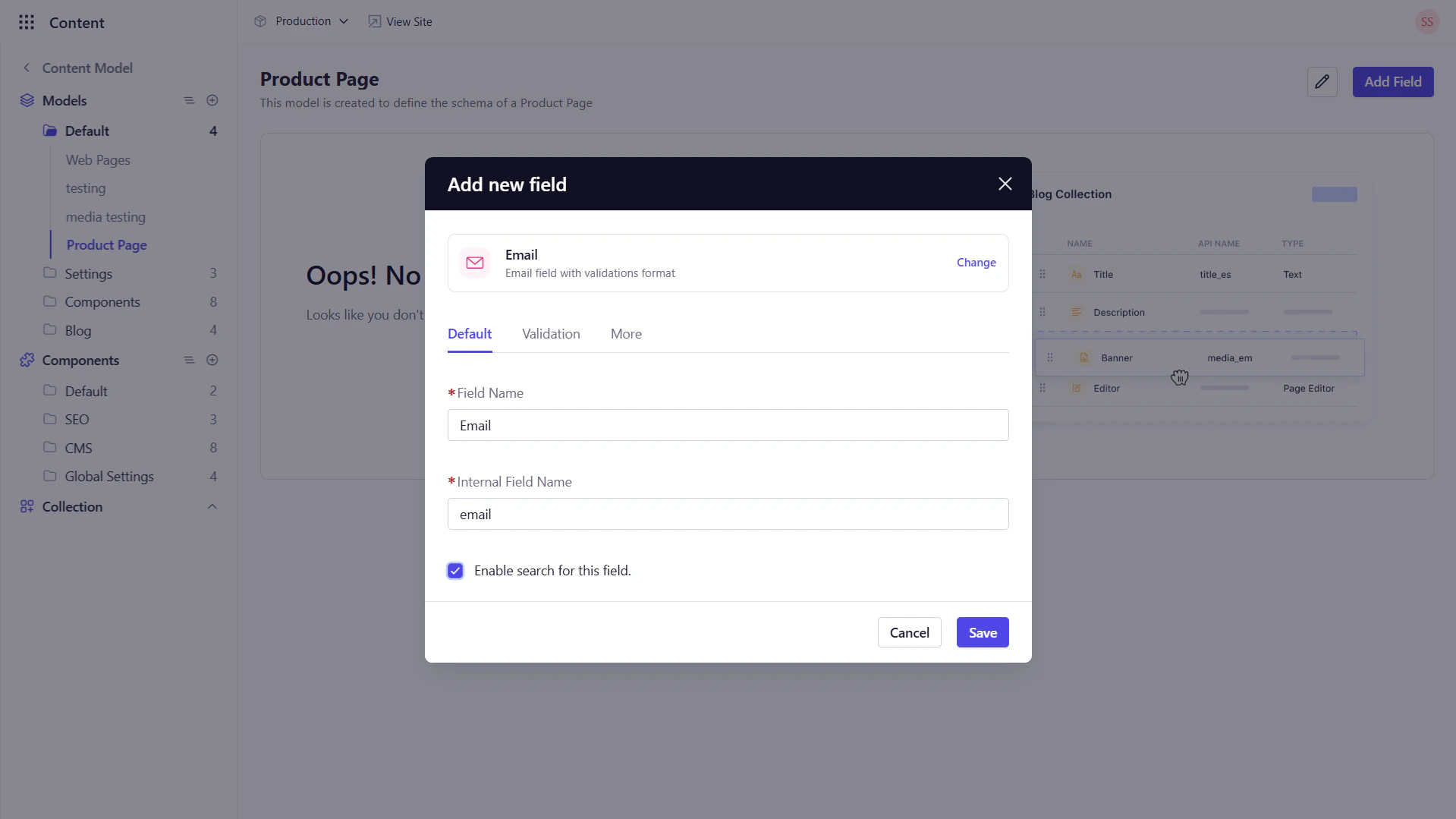 - Field Name : Enter the display name for the field.
