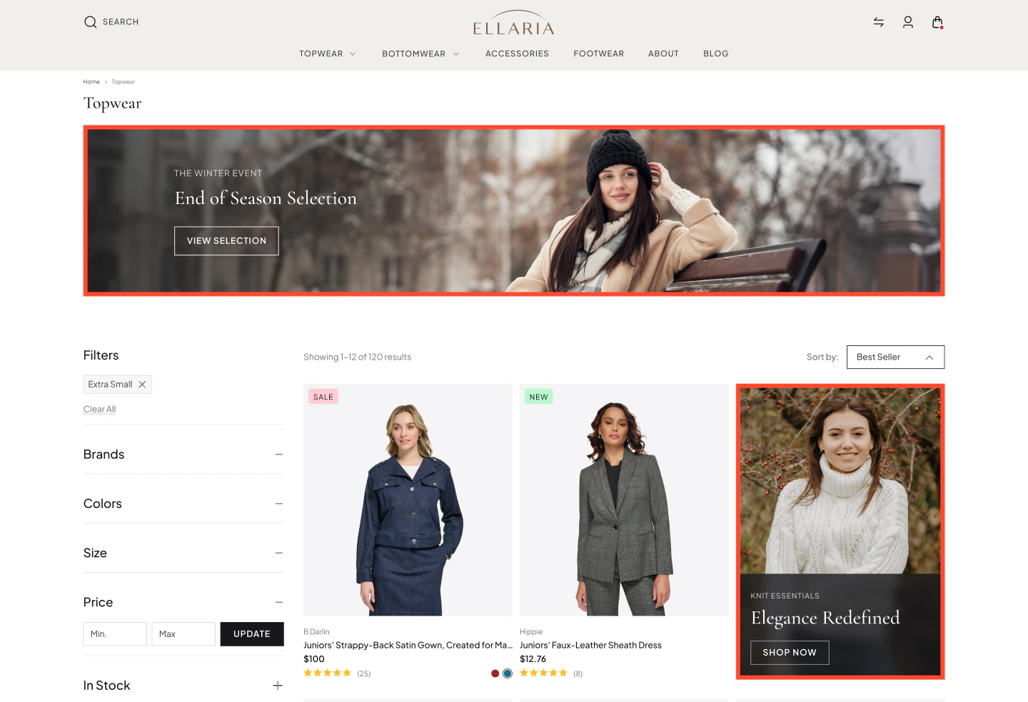 - Reinforce brand partnerships — display co-branded content on category pages during joint campaigns, without modifying the product catalog.