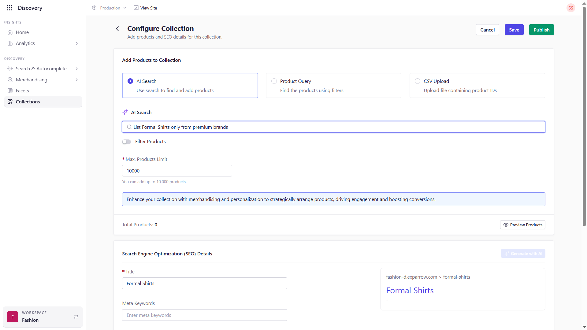 Define dynamic rules that pull products in and out as your catalog evolves. Use simple boolean logic—tag:summer AND price:<100—to power endlessly updating assortments.