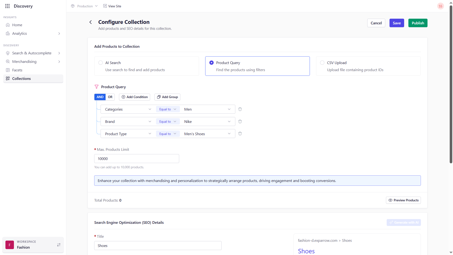 Imagine you’re a footwear retailer gearing up for summer music festivals. With Experro Collections, you can spotlight your festival-ready styles right when shoppers are searching for them.- Collection Name: