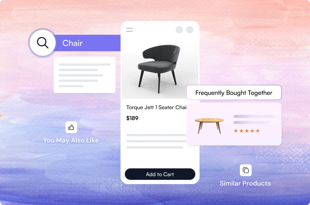 - Create sticky, high-converting experiences with AI-powered discovery moments embedded across your storefront.