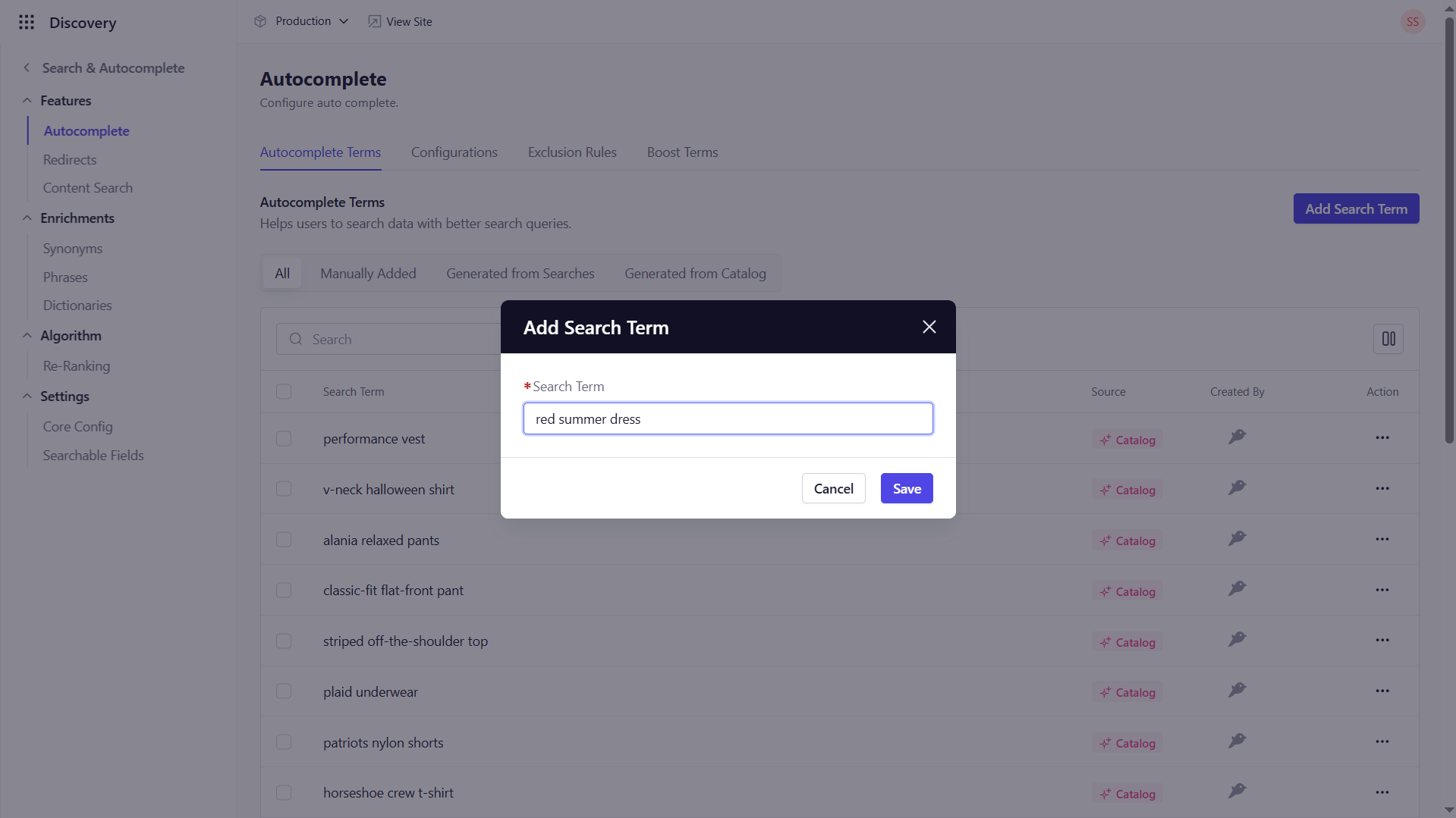 - Go to Discovery → Search & Autocomplete → Autocomplete.