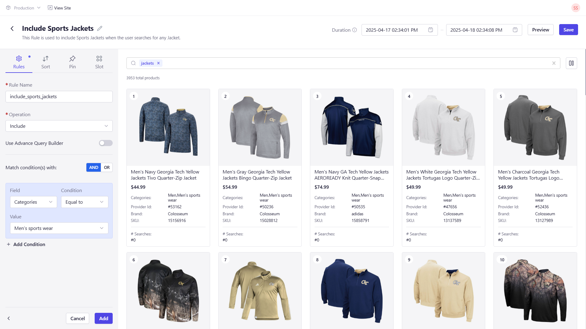 - Exclude Rules: Prevent certain products from appearing in search results, such as items that are discontinued or out of stock.