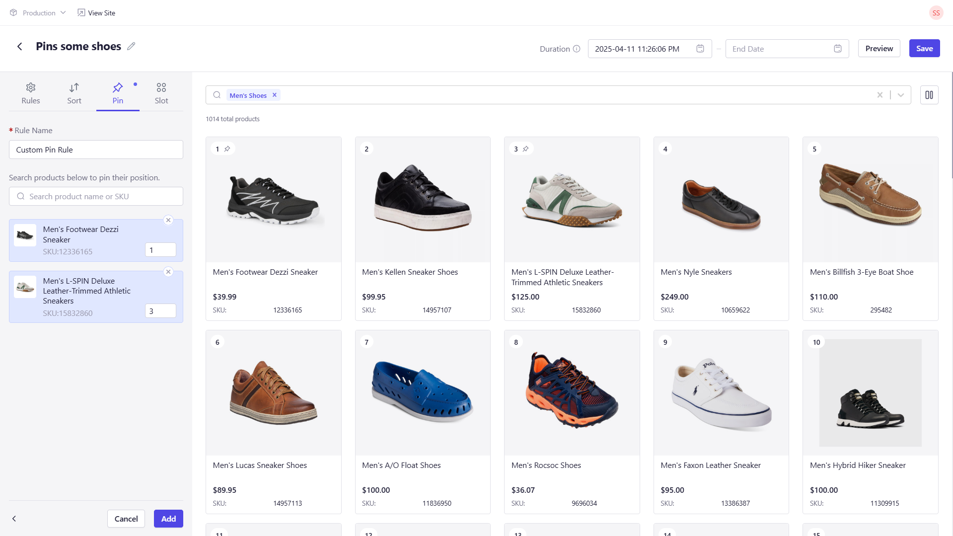 Use a Pin Rule to fix the best-selling dress in the top position whenever the search query “summer dress” is entered. Outcome: