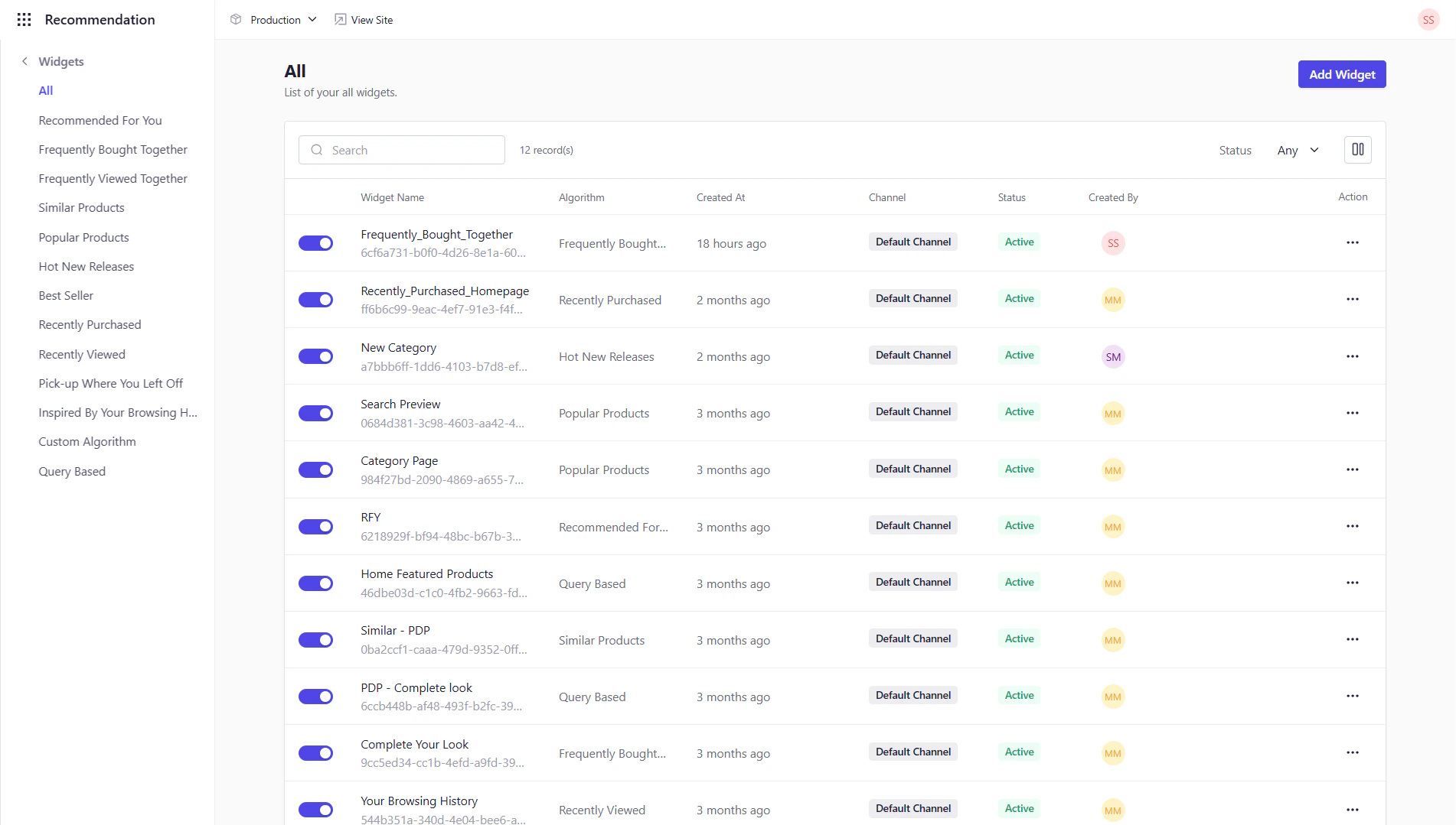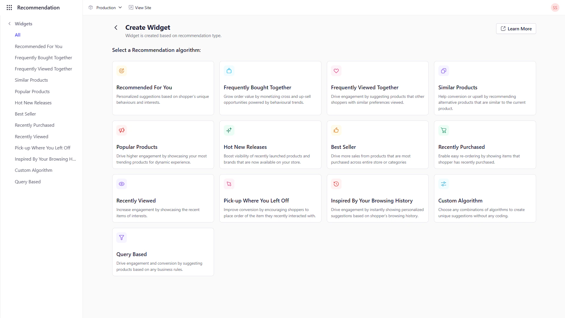 Key ConceptsNow that your widget and rules are in place, explore Recommendation Algorithms to learn more about each algorithm.
