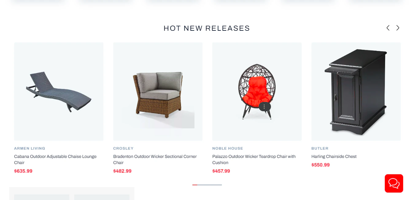 A shopper lands on the Home Page of a fashion store:- Hot New Releases displays a carousel of the newest jackets and accessories launched in the past two weeks.