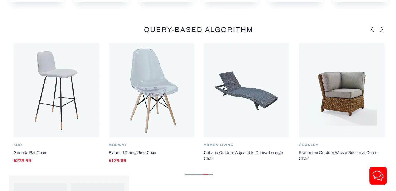 - The top 5 chairs are returned as recommendations in a headless widget on the category page.