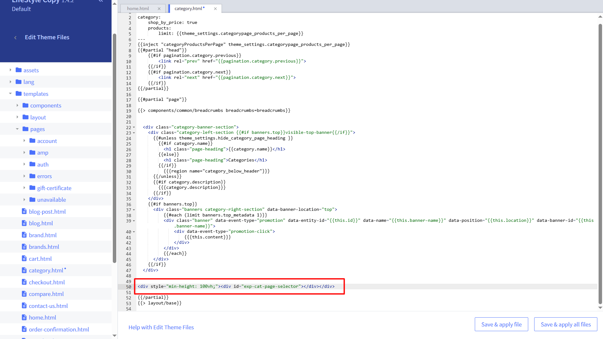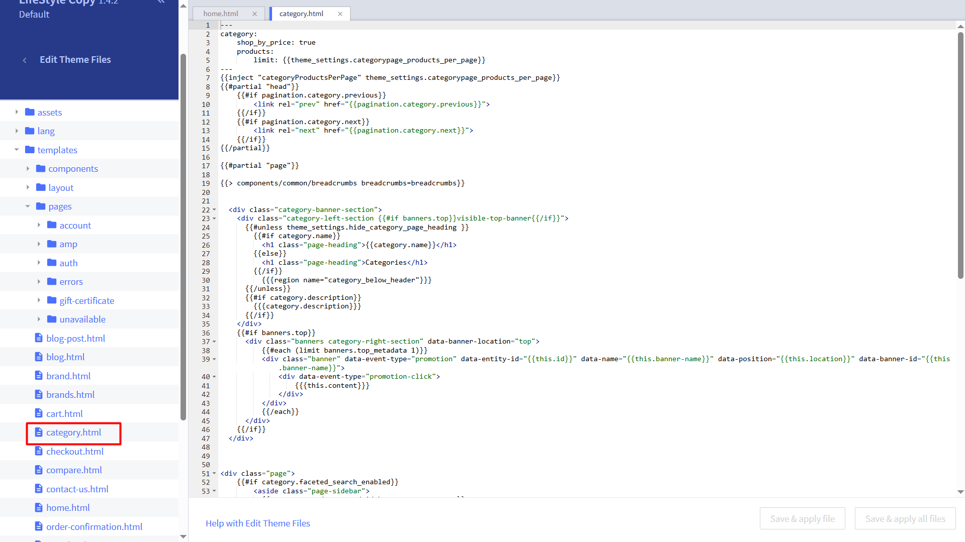 Click Save to commit your changes. BigCommerce will re‐apply the updated template immediately.