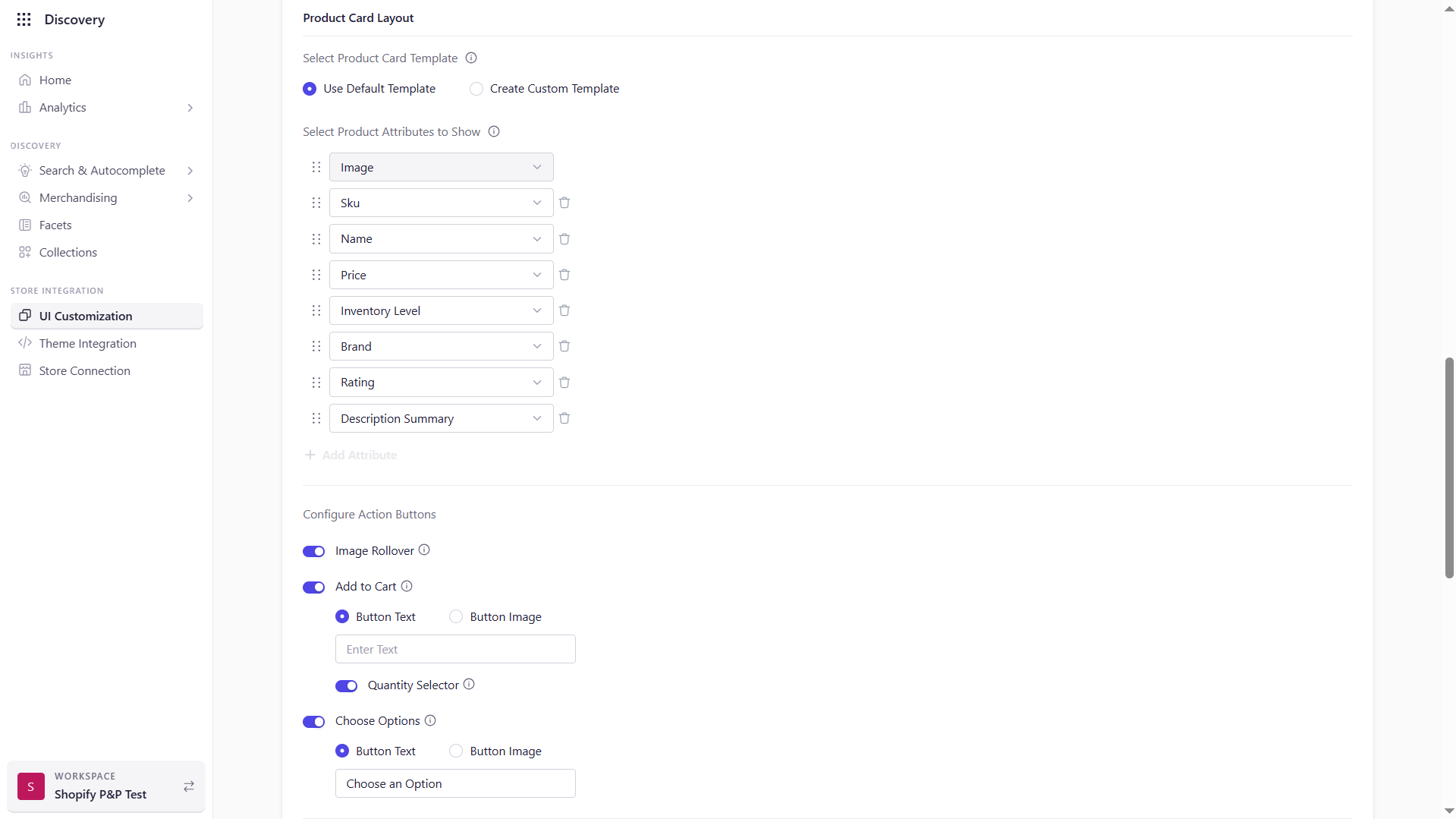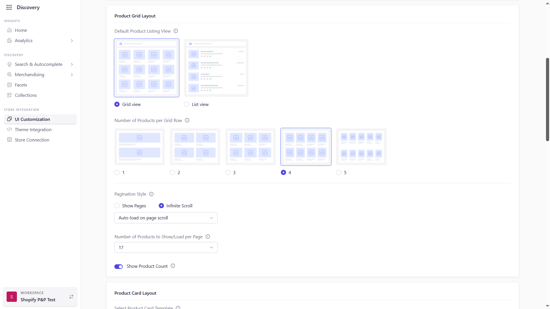 - In the Experro Admin, go to Discovery → Store Integration → UI Customization → Layout → Product Card Layout.